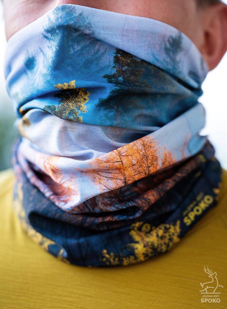 Komin wielofunkcyjny Barwny Las jest SPOKO nie tylko ze względu na swoje wizualne walory (Jesienny las we mgle prezentuje się naprawdę zjawiskowo i… niezwykle twarzowo), lecz nade wszystko ze względu na otulającą wygodę i szerokie możliwości użycia w terenie.