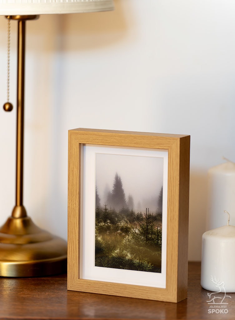 Ramka w kolorze dębu będzie pasować do każdego wnętrza, dodając mu ciepła i przytulności. Sprawdzi się zarówno w nowoczesnych, jak i tradycyjnych aranżacjach.