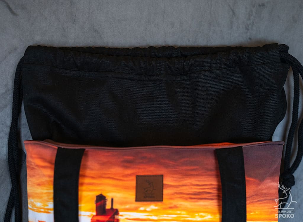 Wygodne i dodające sznytu zamykanie torby poprzez ściąganie sznurków w kominie jest łatwe, szybkie i poręczne. Dodatkową zaletą tego rozwiązania jest możliwość zwiększania pojemności torby, wykorzystując ów “komin” jako przedłużenie torby, jeśli wymaga tego sytuacja.